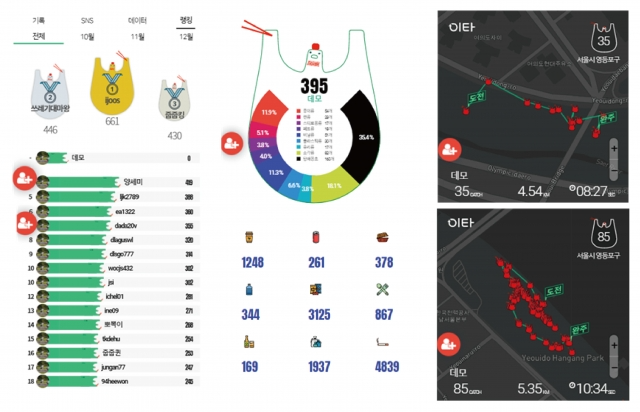 실제 웹에서는 쓰레기를 많이 주운 순으로 랭킹화돼 참여자들이 ‘재미’도 느낄 수 있게 됐다고 한다. 한 대표는 “쓰레기 줍기를 봉사, 환경보호, 사회 문제 등 심각한 문제로 인식하는 대신 상위 등급에 도달하려고 미션을 클리어하는 식의 게임처럼 받아들이는 청년들의 새로운 문화를 발견할 수 있었다”고 했다.